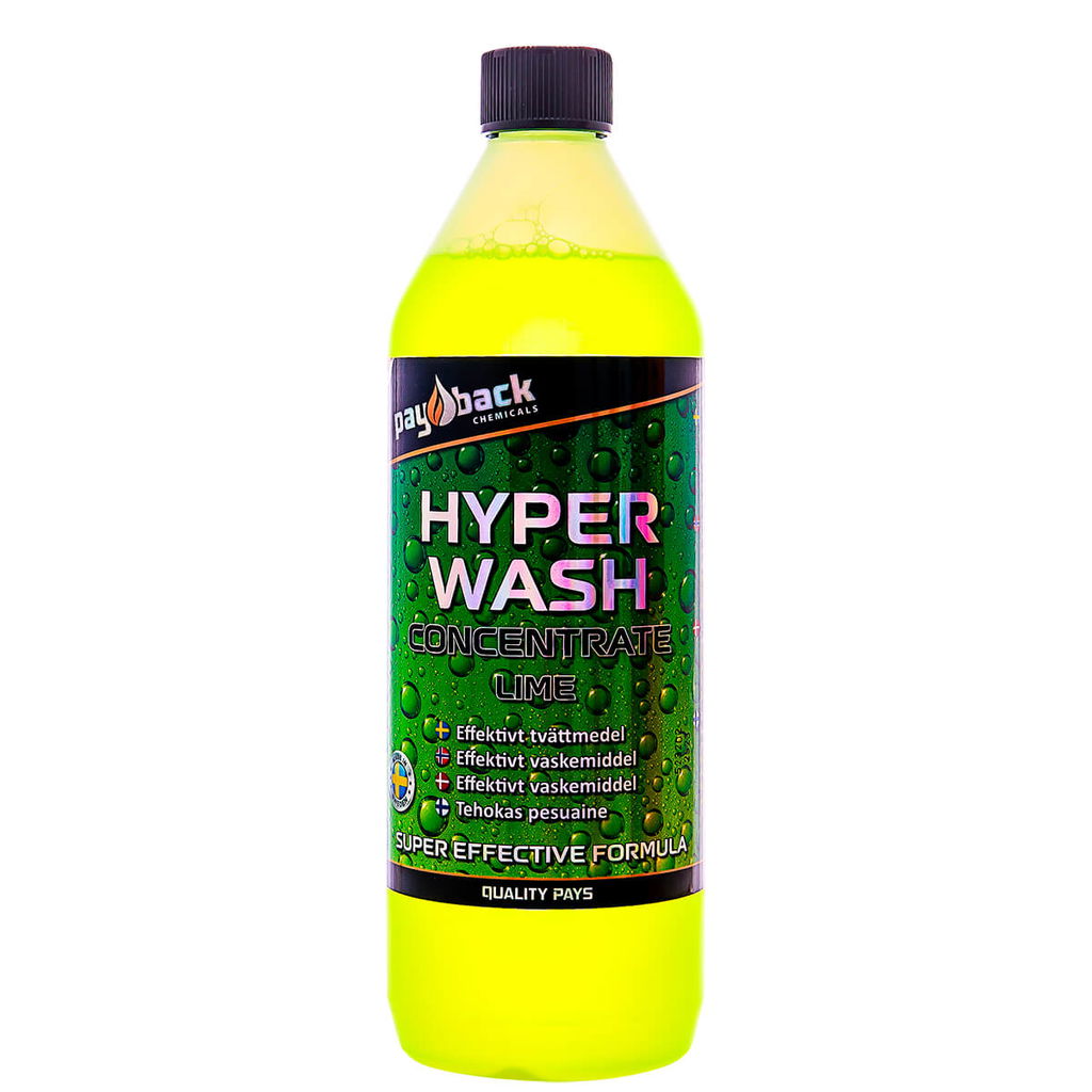 Hyper Wash rengör karosser, plast, fälgar och gummi. Löser insekter direkt och stora delar vägsalt kan avlägsnas utan kallavfettning.